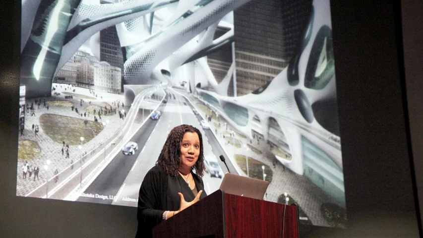 Vanessa Keith, principal of StudioTEKA who discussed her book "2100: A Dystopian Utopia — The City After Climate Change" as part of this year's School of Architecture lecture series.