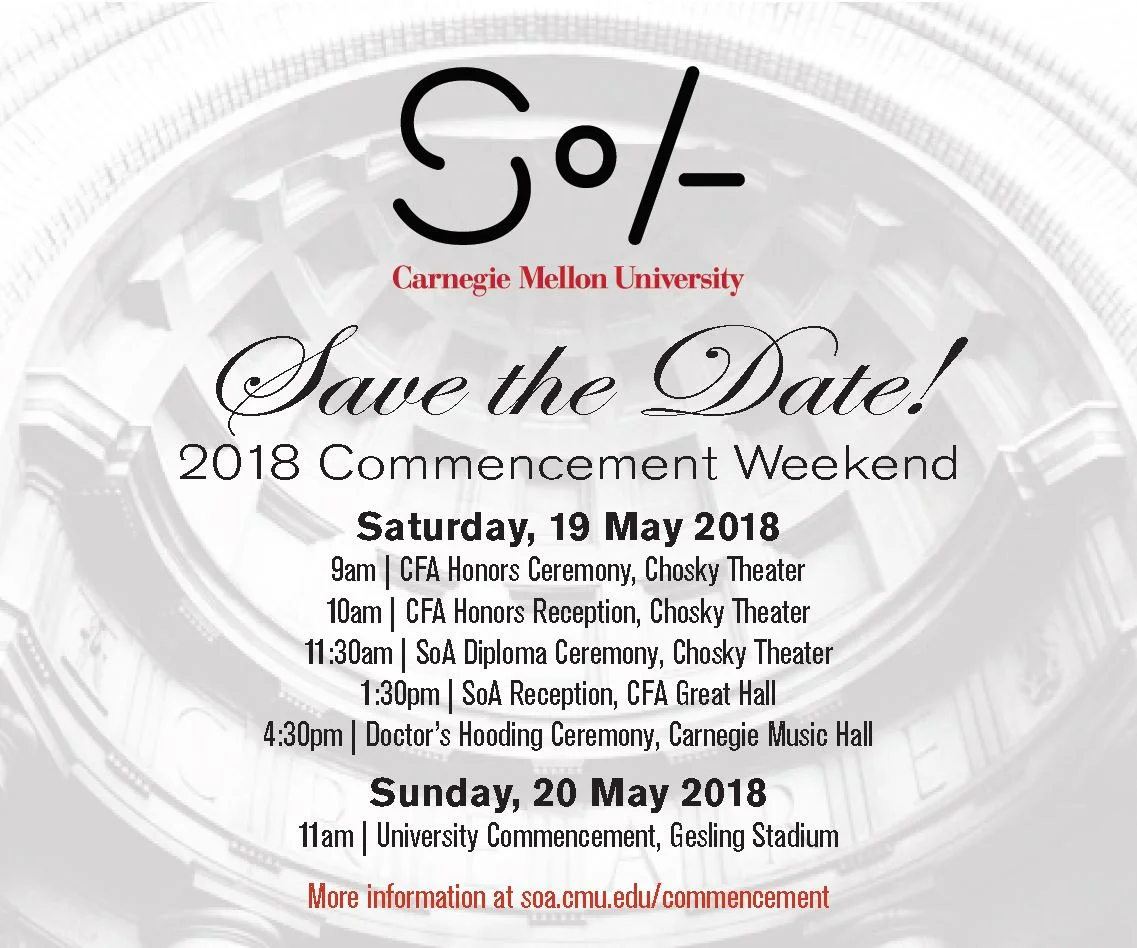 Visit soa.cmu.edu/commencement for important information and deadlines, as well as a schedule of events.