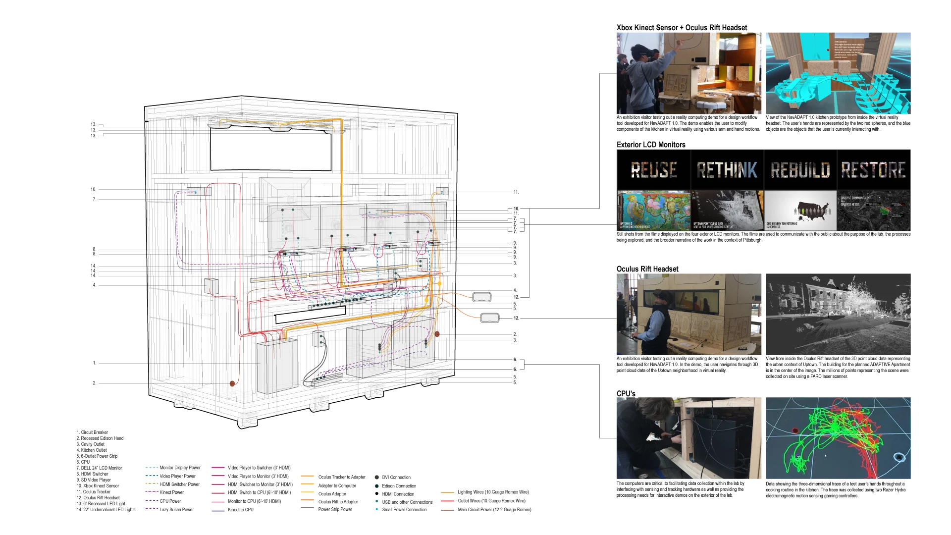 The ADAPTIVE KITCHEN seeks to serve those with lower limb loss, visual impairment, and limited mobility, which are some of the most prominent injuries among veterans. As a working laboratory exploring the potentials of reality computing and emerging technologies in the design of human-centered environments, the NavADAPT LAB was developed to iteratively prototype and test components of adaptive and augmented spaces for application into the ADAPTIVE Kitchen. The first prototype, NavADAPT 1.0, was completed in March 2016 and exhibited at REAL2016 in San Francisco. A second prototype, NavADAPT 2.0, was completed in August 2016.