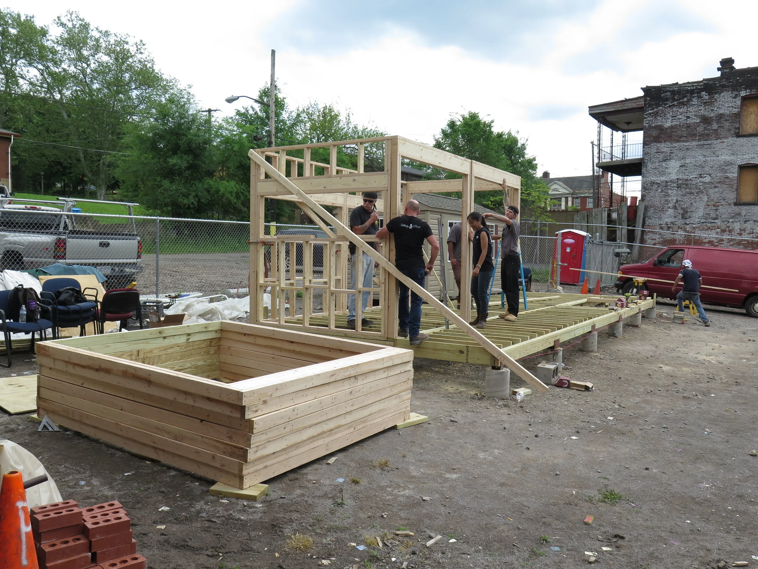 The design objectives for ALL ACCESS 02 were to use vernacular strategies for the passive control of air, light and water; demonstrate what can be done with reused/recycled materials; and employ construction strategies that could be completed by people with knowledge bases and skills still in development. The site lease prohibited installation of permanent structures, so the design employs principles of component-based pre-fabrication and Design for Deconstruction. The entrepreneur aspires to expand her business and utilize the demountable built elements on a larger site in the future. Predicated on systems for mass production, the structure developed for ALL ACCESS 02 demonstrates how universal components from the ALL ACCESS system can be integrated in the creation of a site specific design. Components were pre-fabricated and delivered to site to ensure quality and decrease on-site construction time. Construction was completed by Trade Institute of Pittsburgh carpentry and welding apprentices who gained job training and elevated their earning potential while contributing to their community.